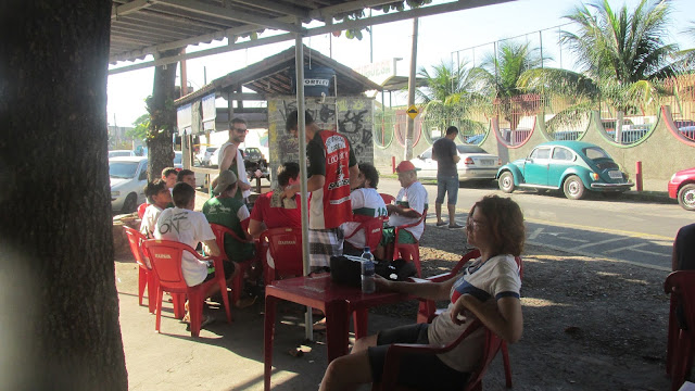 Chegando próximo ao clube, paramos para descansar. Há um quiosquinho bem agradável para socializar ante e depois do jogo bem em frente ao clube: